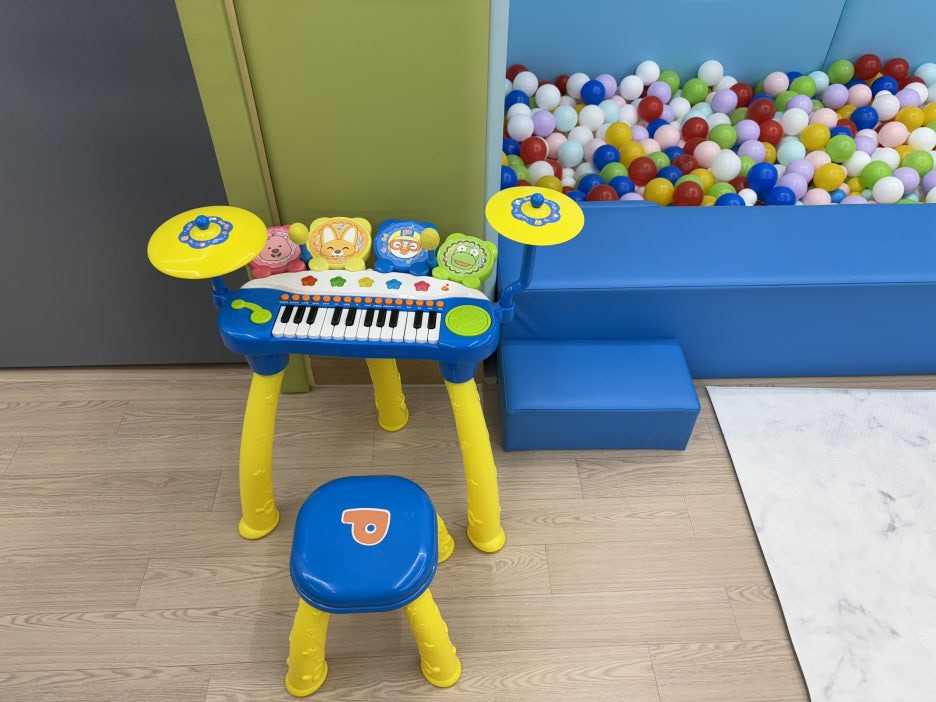 트램벌린이 작게 있고, 볼풀장도 작게, 미끄럼틀도 거의 두돌 이하 수준? 입니다.