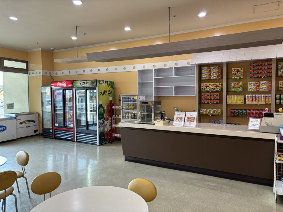 옆에 카페테리아가 있는데, 도시락이나 간식 먹기 좋은 공간입니다.