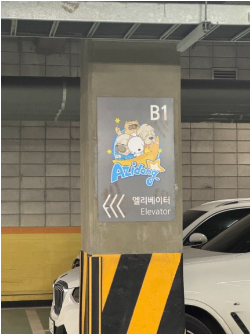 아지동키즈카페 검색 하면 A동에 지하주차장도 있고, B동 앞에 지상주차장도 있어요.